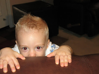 This is my nephew, Kolsen. He is 16 months old. I gave him a fohawk the other day, and I took tons of pictures because he was being SO cute. So here they are.